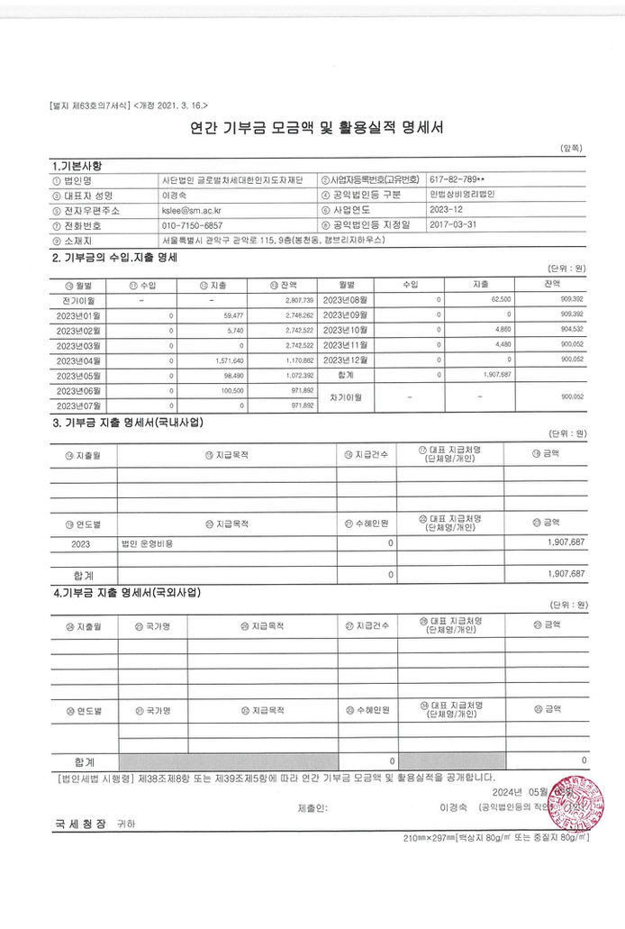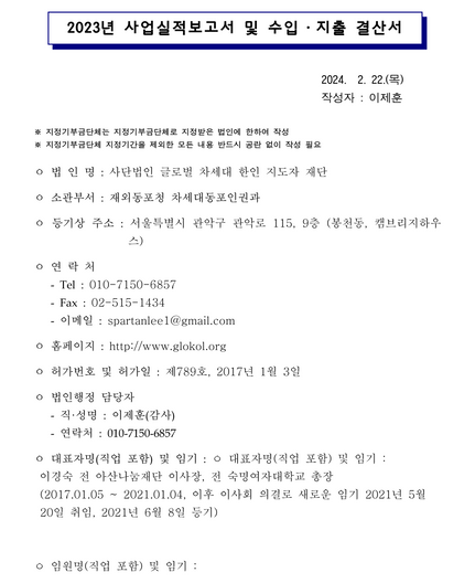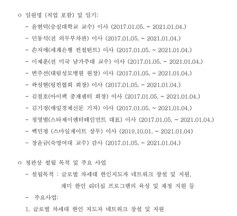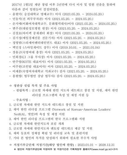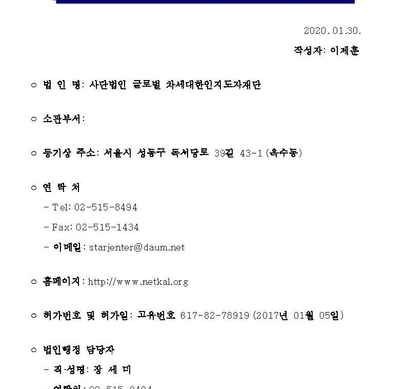 (1) 명 칭 사단법인 글로벌차세대한인지도자재단